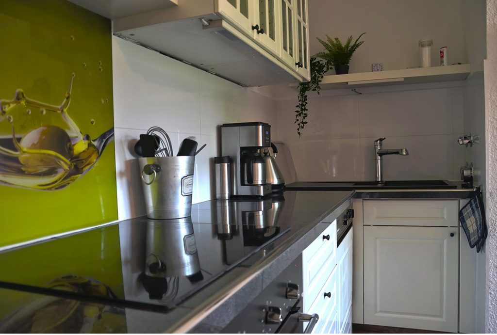 - Küche mit Herd, Backofen und Kaffeemaschine