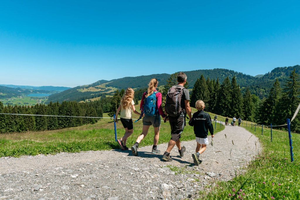 Mit vielfältigen Erlebnismöglichkeiten für Kinder ist Oberstaufen ein echtes Abenteuerland für Familien. Ganz oben auf die Bucket List gehört die Sommerrodelbahn am Hündle, in der es auf einer Länge von 850 Metern in rasanter Fahrt durch 16 Kurven und über zwei Jumps geht. Am Imberg verbindet der liebevoll gestaltete Alperlebnispfad auf gut sechs Kilometern mit 22 informativen Stationen Wissen und Natur auf spielerische Weise. Auch sonst gibt es rund um Oberstaufen viel zu entdecken, angefangen vom Kinderspielplatz an der Talstation der Hündle-Bahn bis hin zum Minigolf mit Aussicht direkt daneben.