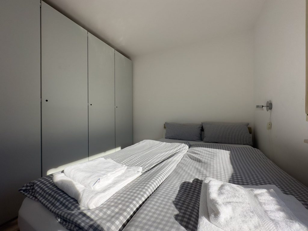 Die Ferienwohnung bietet ein komfortables Schlafzimmer, in dem Sie nach einem ereignisreichen Tag friedlich schlafen können. Hier finden Sie hochwertige Bettwäsche, die für einen erholsamen Schlaf sorgt. Das Badezimmer ist mit einer Dusche ausgestattet und selbstverständlich stehen Hand- und Badetücher für Sie bereit.