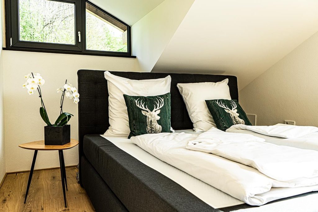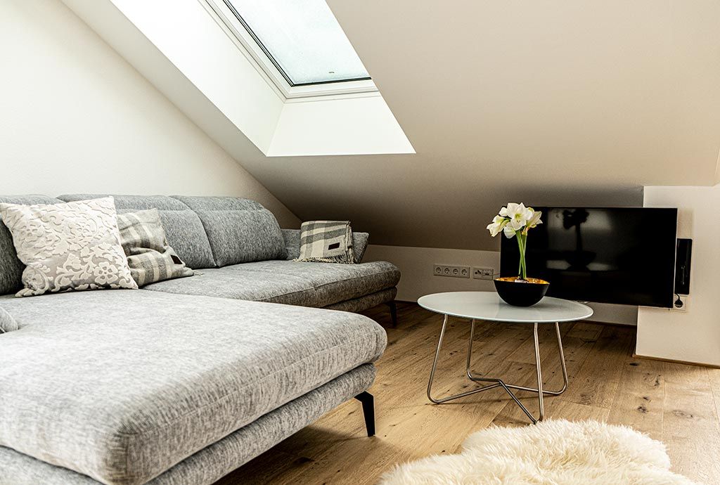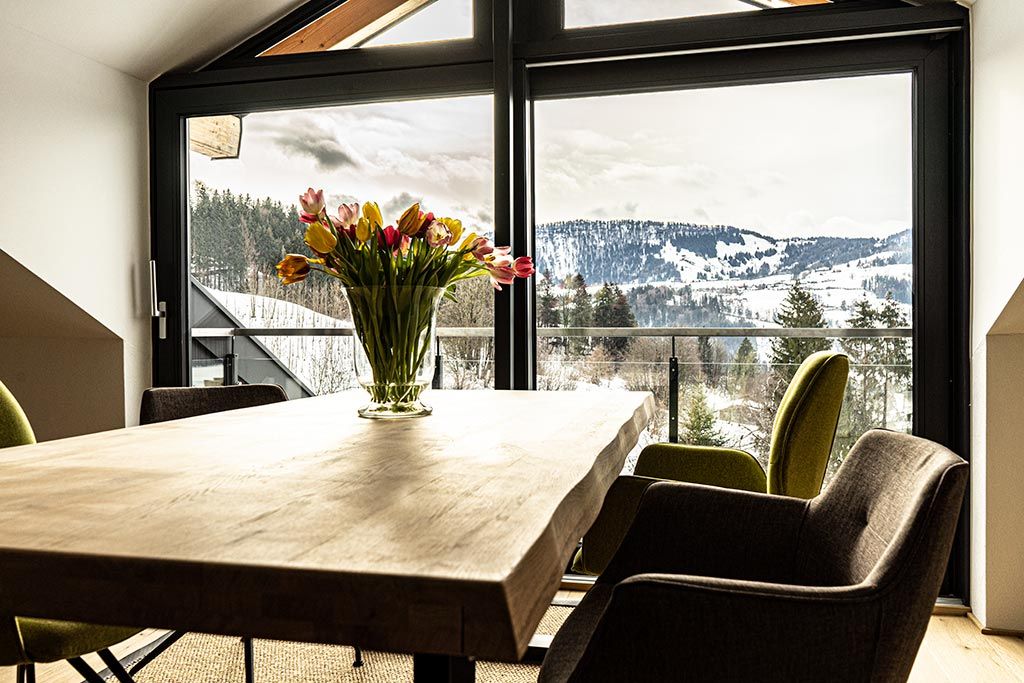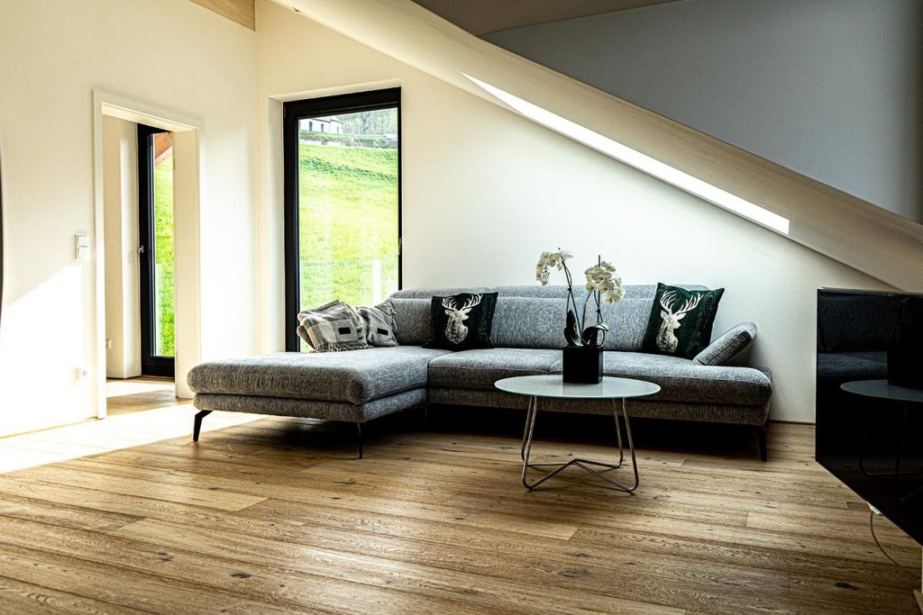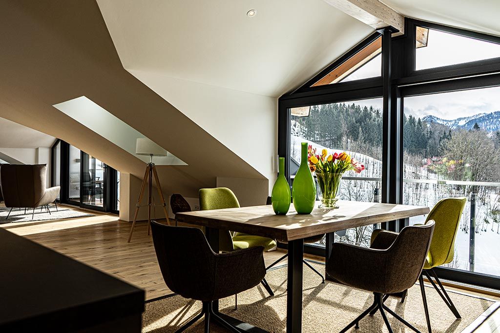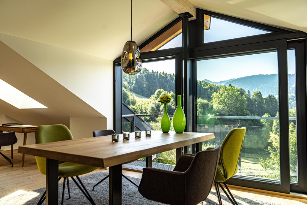 Verbringen Sie einen erholsamen Urlaub in der Ferienwohnung Ausblick. Die luxuriöse Ferienwohnung im Dachgeschoß wurde 2020 fertiggestellt. Sie verfügt neben der ruhigen Lage über einen wundervollen Panoramablick auf die Berge und den Ortsteil Weißach von Oberstaufen. Vom Zentrum in Oberstaufen erreichen Sie die Ferienwohnung innerhalb von 2 Minuten mit dem Auto. Zu Fuß gelangen Sie in maximal 15 ...WeiterlesenMinuten in das Zentrum von Oberstaufen, mit vielen Einkaufsmöglichkeiten und Restaurants. In der Ferienwohnung Ausblick mit ihren ca. 150 qm erwarten Sie 2 getrennte Schlafzimmer mit jeweils einem großen Doppelbett (2×2 m). Ein großes Badezimmer mit Dusche, Badewanne und WC, sowie ein kleines Badezimmer mit WC steht Ihnen zur Verfügung.