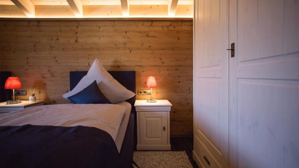 Dieses Chalet befindet sich in Oberstaufen/Steibis inmitten der atemberaubenden Alpenlandschaft des Allgäus. Das freistehende Chalet verfügt über romantische, moderne Möbel im Landhausstil, sowie einen 50-Zoll-Flachbild-Kabel-TV, W-LAN, einen gemütlichen schwedischen Ofen und eine Infrarotkabine für 2 Personen. Im oberen Stockwerk stehen Ihnen zwei Schlafzimmer mit je einem Doppelbett zur Verfügun...Weiterleseng, welche wir auf Anfrage auch gerne für Sie separieren. Das Châlets de la Liberté Garten verfügt über eine Waschmaschine/Trockner und eine voll ausgestattete, luxuriöse Küche mit hochwertigen Utensilien. Auf Anfrage stellen wir Ihnen gerne ein Zustellbett oder/und ein Babybett bereit. Haustiere sind im Châlets de la Liberté nicht erlaubt. Handtücher, Badetücher, Bademäntel, Bettwäsche und Küchentücher werden Ihnen für Ihren Aufenthalt gestellt. Überdachte Parkplätze stehen Ihnen direkt vor der Unterkunft zur Verfügung. Im Außenbereich liegt eine großzügige Terrasse mit 4 Sitzplätzen, einem Tisch und einem Schirm.