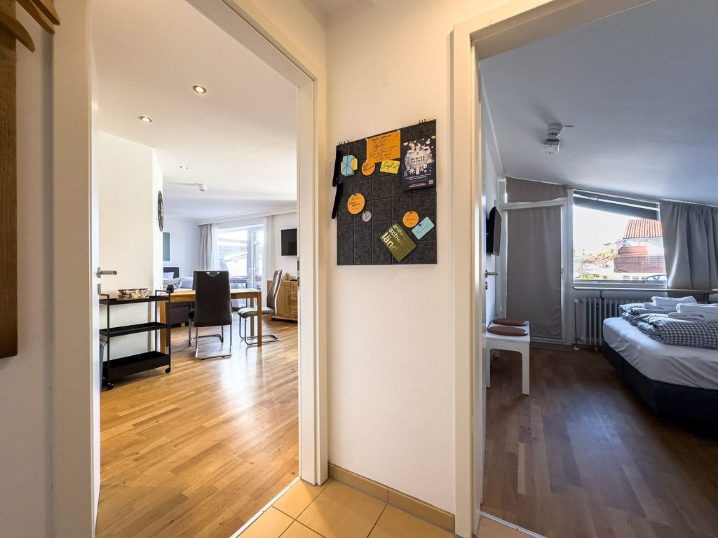 Die Wohnung verfügt über zwei Schlafzimmer sowie eine gemütliche Sofaecke, die sich hervorrage...Weiterlesennd als zusätzlicher Schlafplatz nutzen lässt. Geräumige 2 Badezimmer bieten für alle Gäste den erforderlichen Komfort und Privatsphäre. Über die offene Küche gelangen Sie direkt in den einladenden Essbereich und das stilvolle Wohnzimmer, wo gesellige Abende garantiert sind. Die voll ausgestattete Küche lässt keine Wünsche offen, ob beim Zubereiten eines herzhaften Frühstücks oder einem gemeinsamen Abendessen. Kaffeemaschine, Spülmaschine, Herd mit Backofen und Kühlschrank samt Gefrierfach sind nur einige der Annehmlichkeiten, die Ihnen zur Verfügung stehen.
