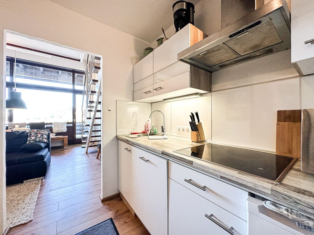 Die offene Küche ist vollständig zum Wohnzimmer hin integriert und mit allem ausgestattet, was Sie für die Zubereitung Ihrer Mahlzeiten benötigen. Neben einem 4-Platten-Herd, Mikrowelle, Kühlschrank mit Gefrierfach und Spülmaschine stehen Ihnen außerdem eine Kaffeemaschine, ausreichend Küchenutensilien sowie Geschirr und Besteck zur Verfügung. Auch Geschirrhandtücher und ein Abfalleimer sind vorhanden, sodass Ihnen die täglichen Aufgaben während Ihrer Auszeit erleichtert werden.