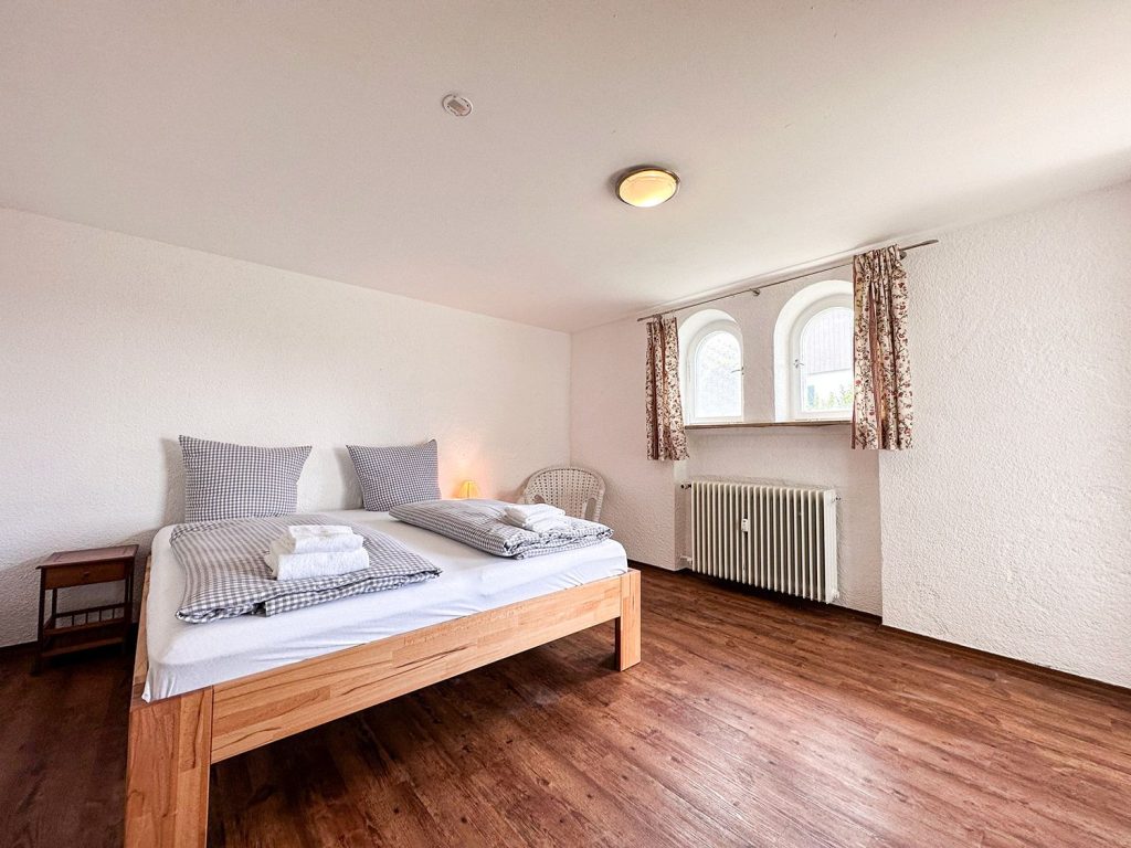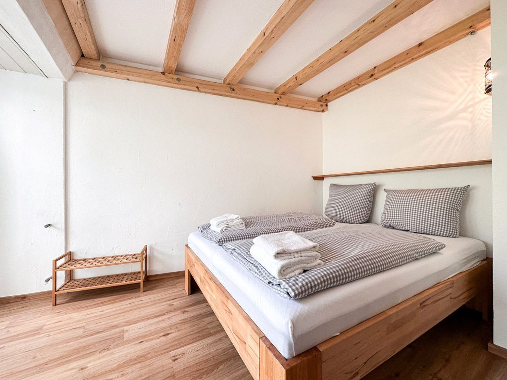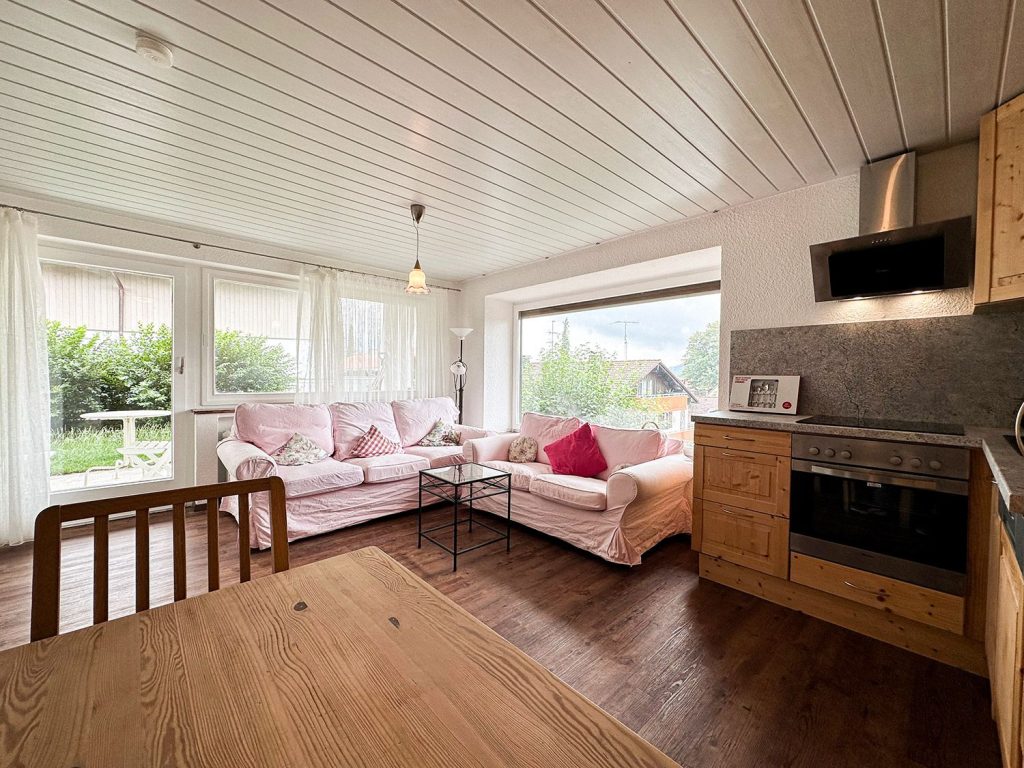 Mit einer Größe von rund 75 Quadratmetern bietet die Ferienwohnung Giebelblick A Platz für bis zu vier Personen. Mit dem zum Wohnzimmer hin geöffneten Kochbereich, den beiden Schlafzimmern und einem Bad steht ein großzügiges Platzangebot zur Verfügung. Familien mit Kindern sind ausdrücklich willkommen, aber auch in der Gruppe reisende Freunde werden sich in dieser Ferienwohnung in Oberstaufen wohlfühlen.
