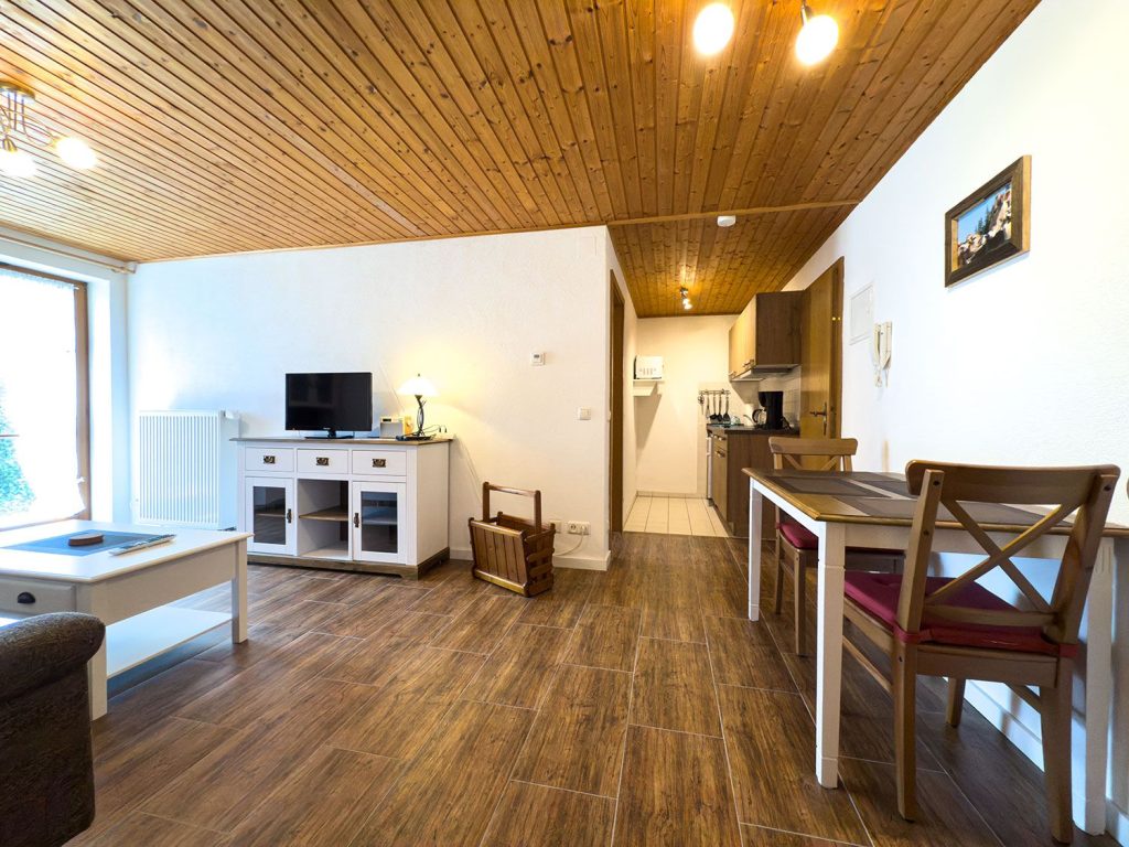 Das Herzstück des Hauses bilden die großzügigen Wohn- und Essbereiche mit bequemer Sofaecke und Sessel. Die sechs Fernseher im Haus sorgen auch bei Schlechtem Wetter für Unterhaltung. Ein moderner Kaminofen schafft an kühlen Tagen ein behagliches Ambiente. Der Essbereich mit Esstisch ist ideal für gemeinsame Mahlzeiten, gesellige Stunden oder Familienfeiern. Die fünf ausgestatteten Küchen bietet alles, was Selbstversorger benötigen unter anderem: Moderne 4-Platten-Herde, Backofen mit Elektroanschluss, Kühlschrank mit integriertem Gefrierfach, Spülmaschine, Mikrowelle, Wasserkocher, Toaster und Kaffeemaschine sowie sämtliches Geschirr, Besteck und Küchenutensilien. Genießen Sie zusammen oder getrennt das Kochen und Essen in den einzelnen Wohnungen oder zusammen als größere Gruppe im großen Wohnbereich.