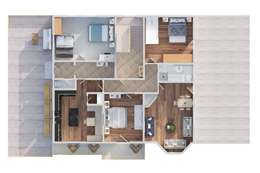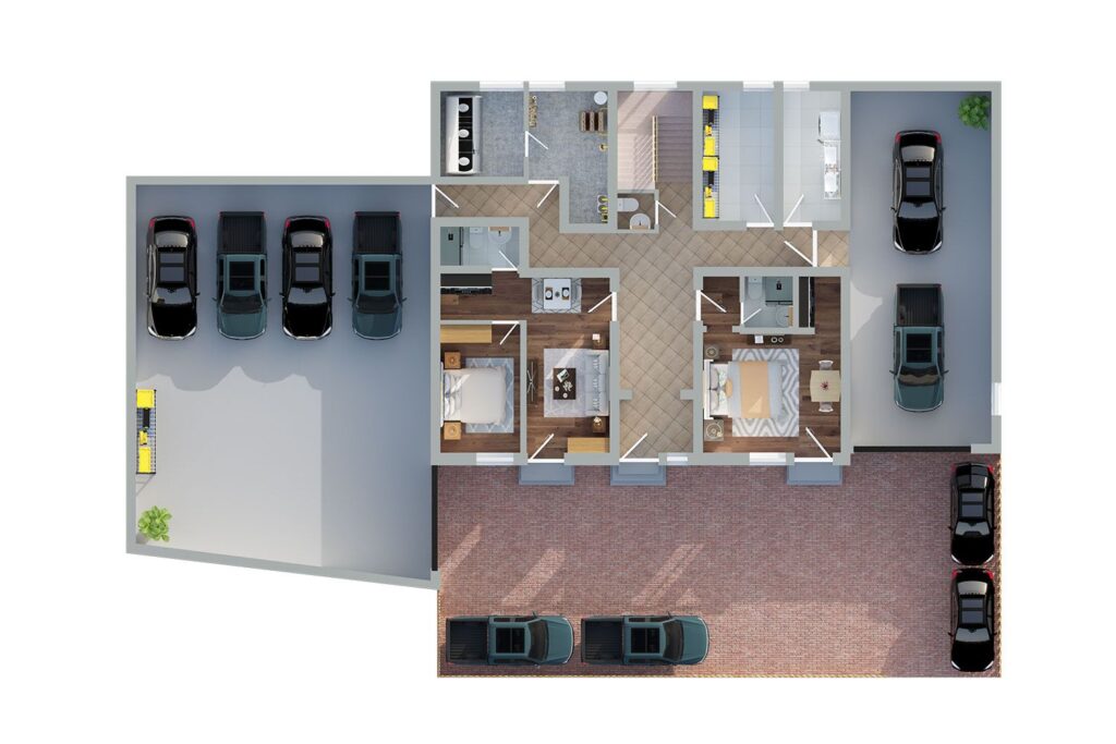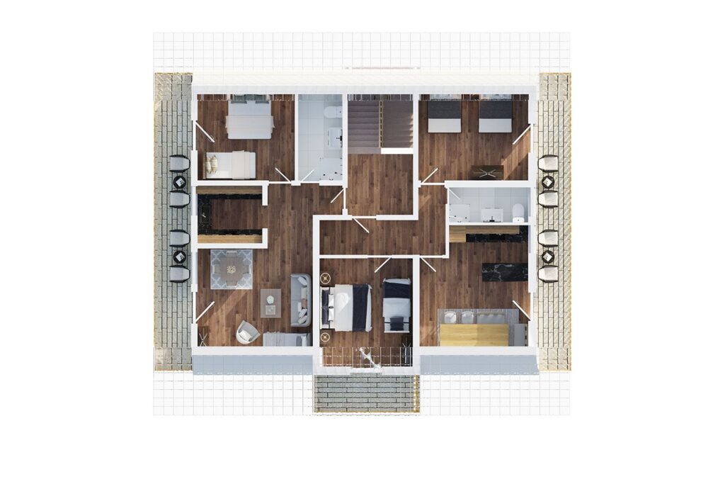 Die insgesamt 13 Zimmer umfassen acht separate Schlafzimmer mit hochwertigem Fliesenboden, die Rückzug und Ruhe garantieren. Für höchsten Komfort stehen sechs Badezimmer zur Verfügung, davon sind fünf mit Dusche und eines zusätzlich mit Badewanne ausgestattet. Zwei separate Gäste-WCs sorgen für angenehme Flexibilität, insbesondere bei voller Belegung.