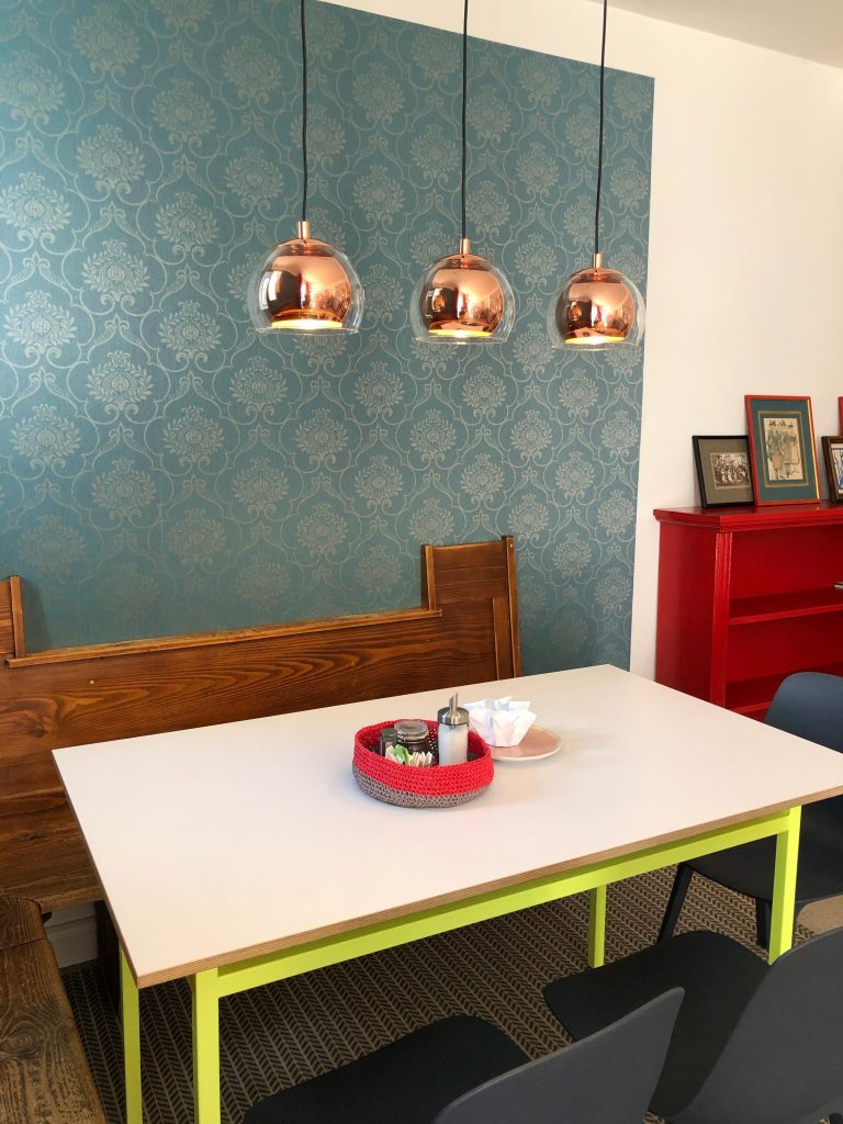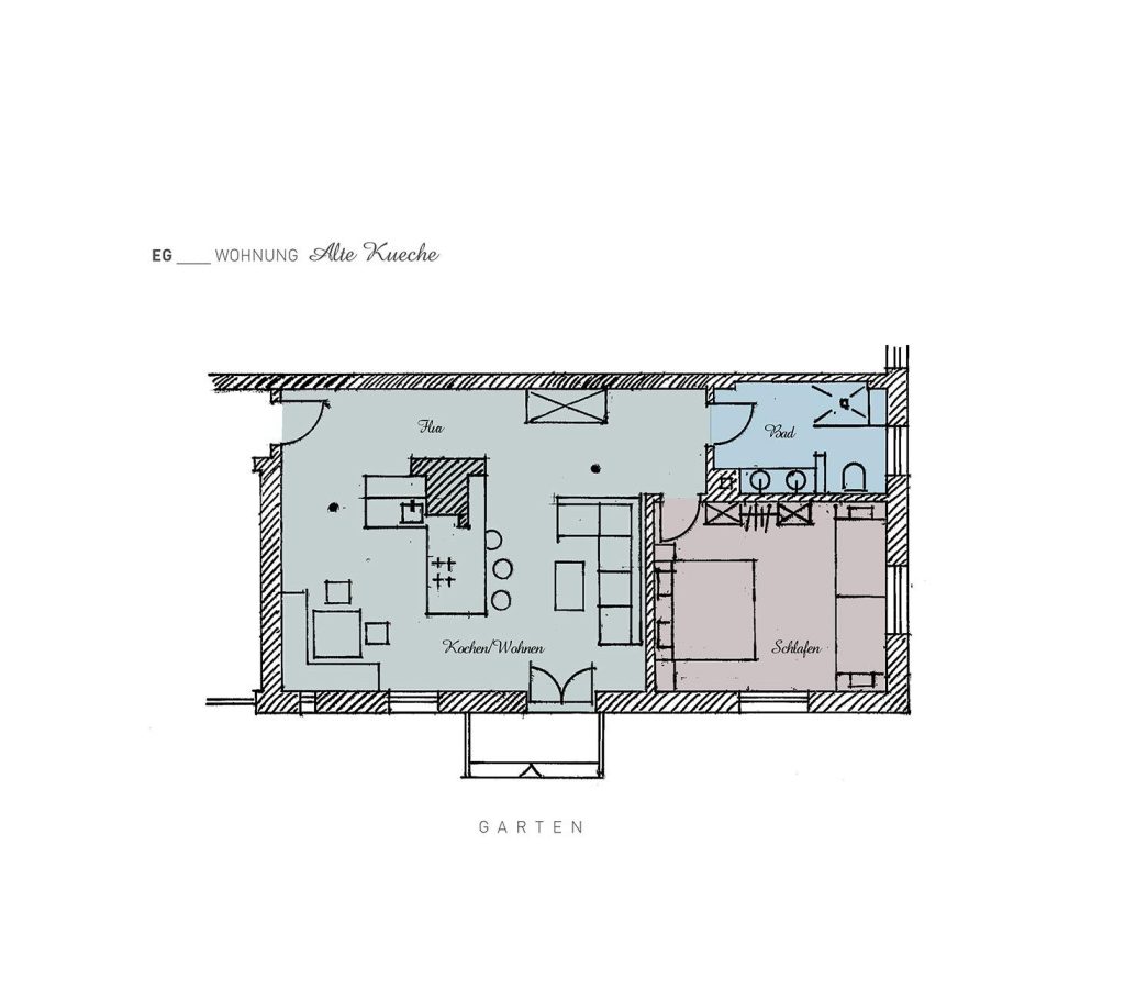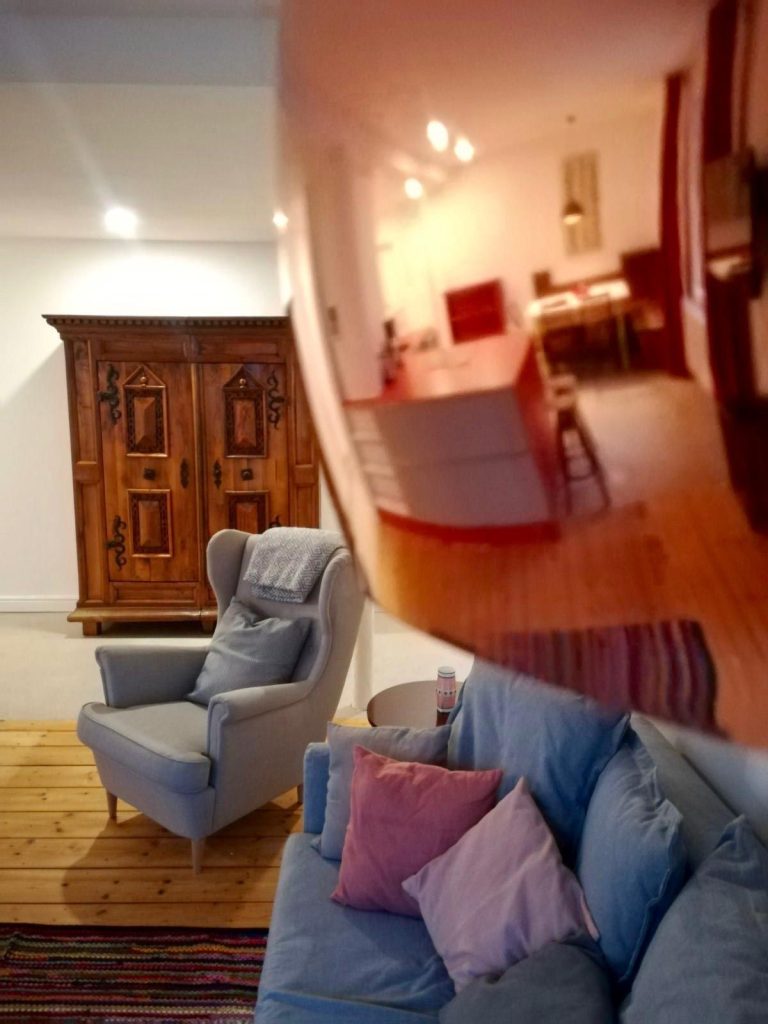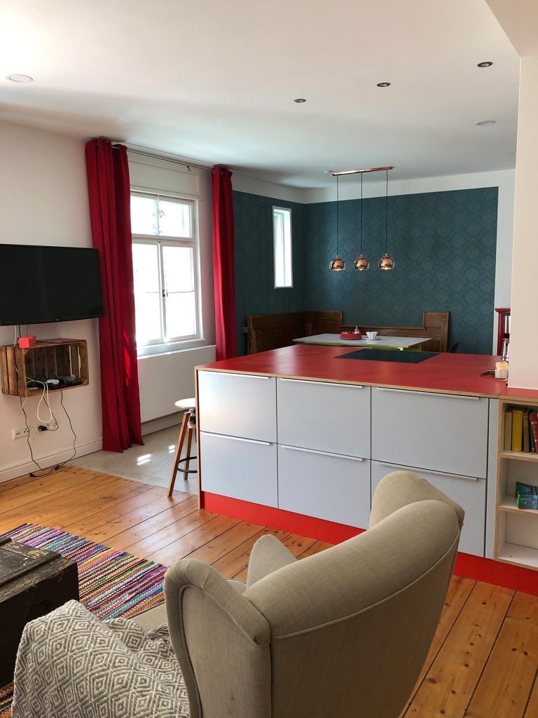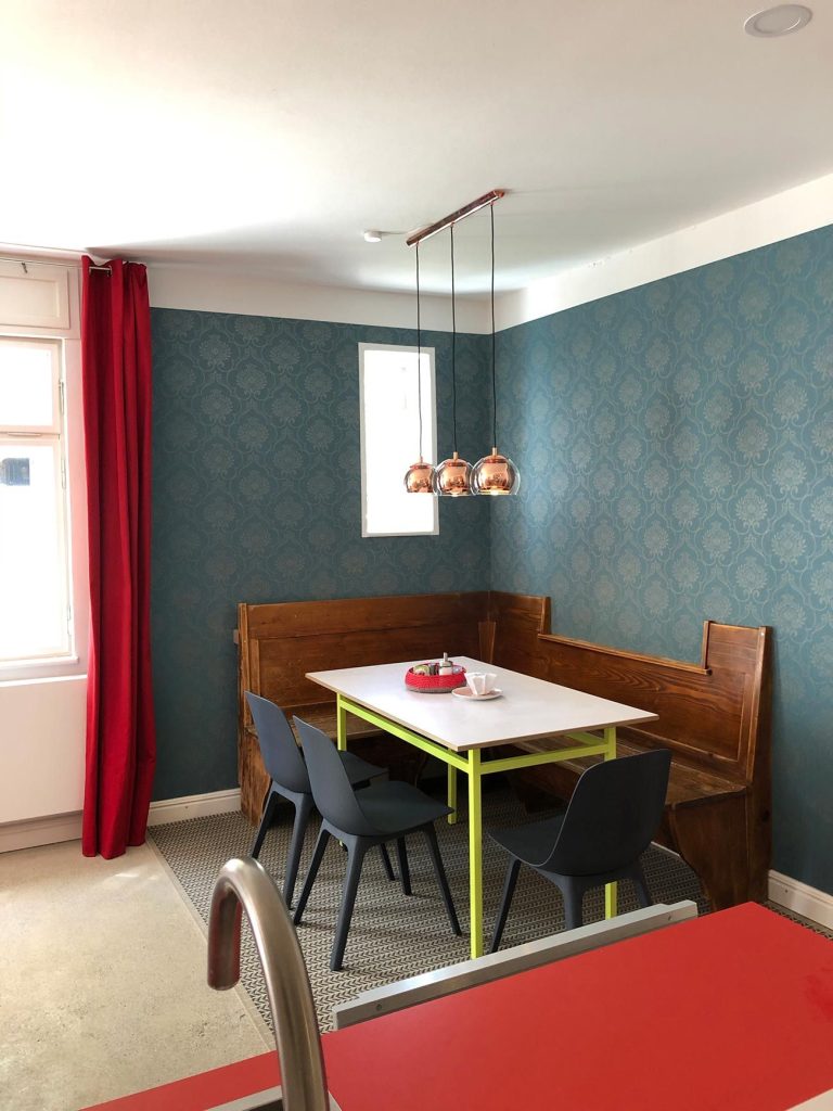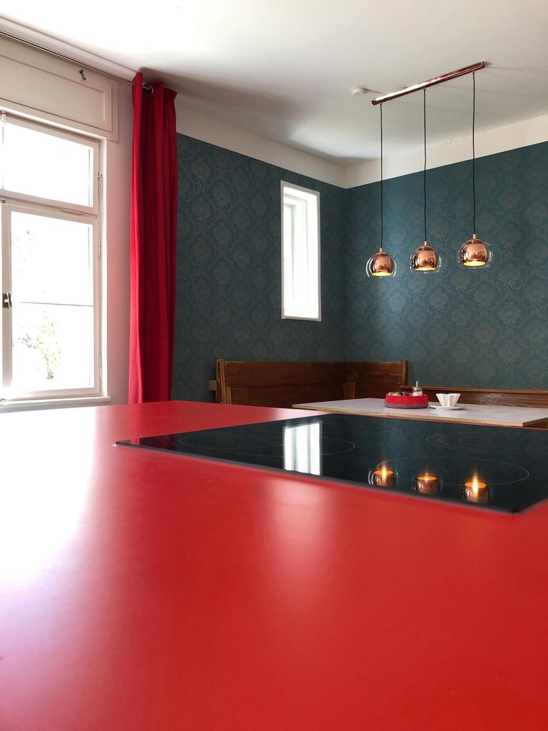 Das Loft unter unseren Ferienwohnungen Die Wohnung Alte Küche ist eine traumhafte knapp 80 qm große Wohnung im Erdgeschoss, die durch ihren großzügigen Ess-, Koch- und Wohnraum ein bisschen an ein Loft erinnert. Der Mix aus Beton, Holz, farbigen Akzenten, Originalen aus 50er und 70er Jahren und Mustertapeten, gibt der besonderen Wohnung einen unkonventionellen Boho-Style. Die bezaubernde kleine Te...Weiterlesenrrasse gibt den Blick auf die Thaler Berge und den Weg in die Natur frei, und ermöglicht einen direkten Spaziergang im Garten, wo schon ein gemütlicher Liegestuhl auf seinen Besetzer wartet…