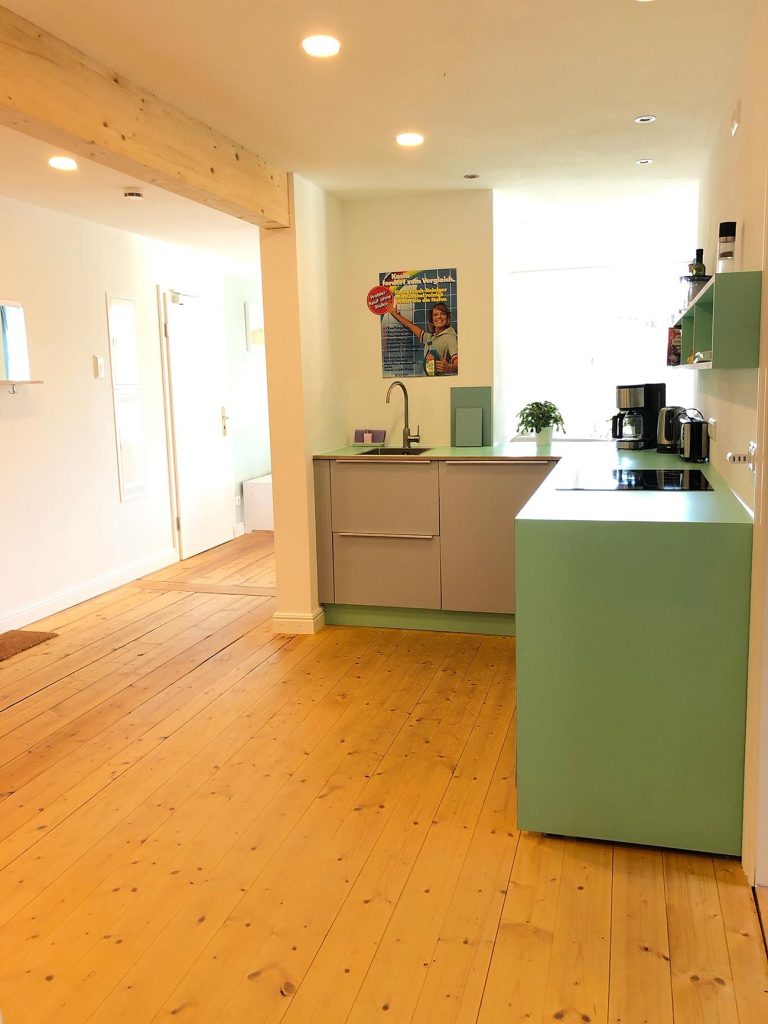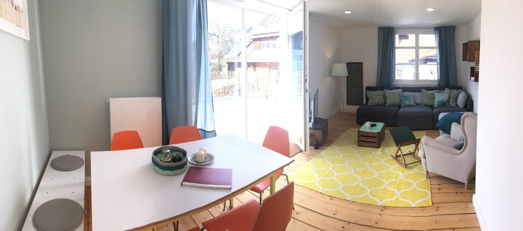 Urlaubsfreuden für Sonnenhungrige Hier ist es nicht nur die 23 qm große West-Terrasse, die unsere Ferienwohnung Christian zum besonders sonnigen Highlight macht. Sie besticht, wie alle anderen Wohnungen im Rosinas, durch einen großen, offenen und hellen Wohnbereich mit einer bequemen Sofalandschaft, die zum Erholen und Faulenzen einlädt. Der reduzierte und skandinavisch anmutende Einrichtungsstil ...Weiterlesenwird hin und wieder gespickt mit wunderbar patinierten Fundstücken aus alten Rosinas-Zeiten. Die Ferienwohnung ist top ausgestattet und lässt keine Urlaubswünsche offen. Kuscheln Sie ein wenig auf dem Sofa und zählen dabei die Schneeflocken oder planen Sie den nächsten schönen Urlaubstag einfach in einem der mit vielen gemütlichen Kissen ausgestatteten Betten.
