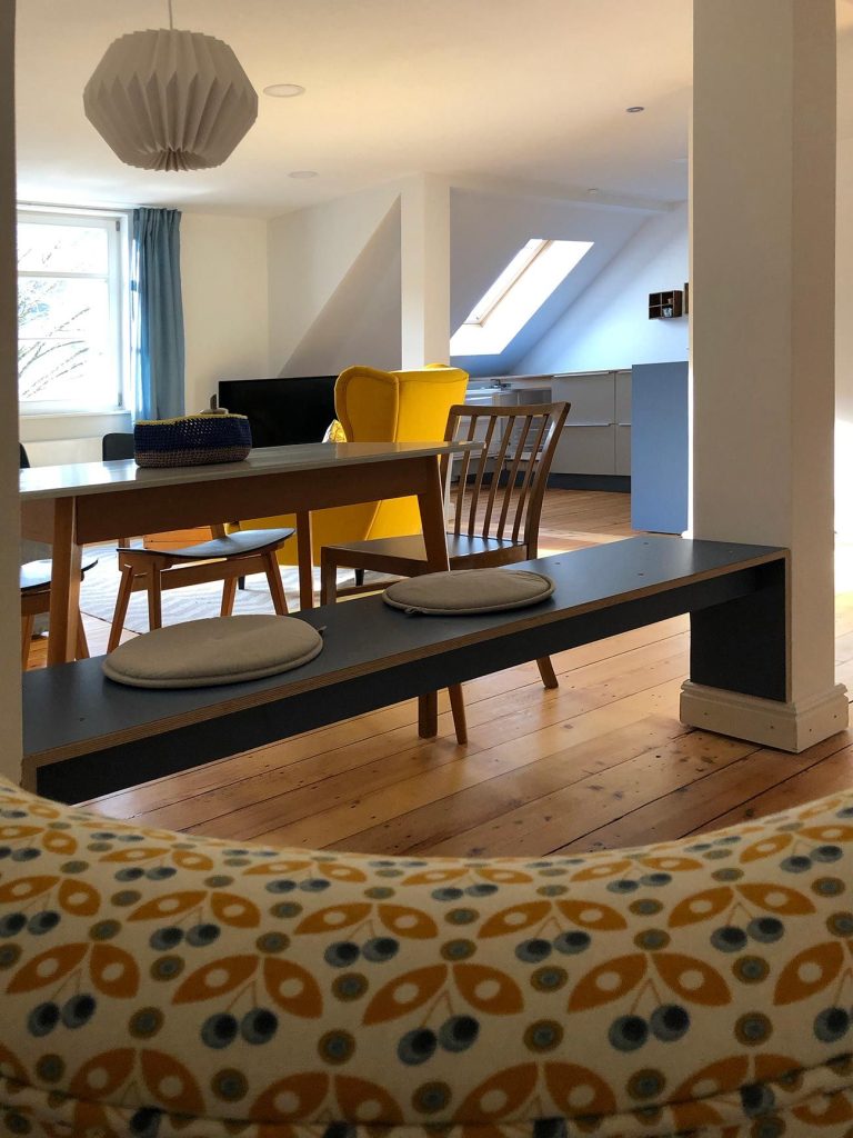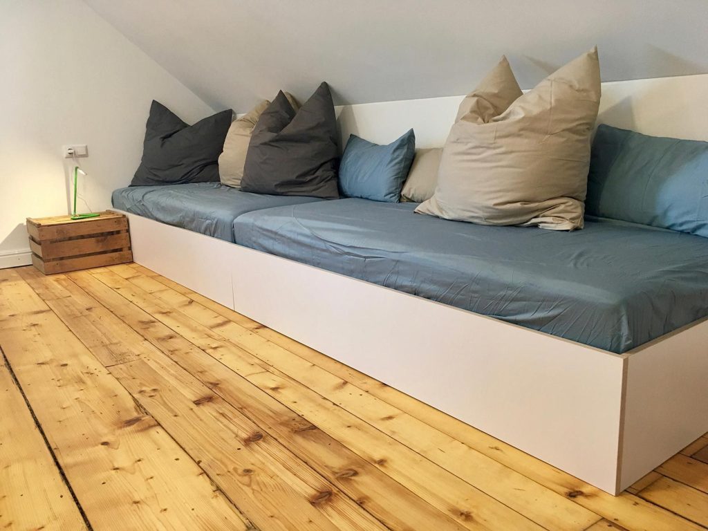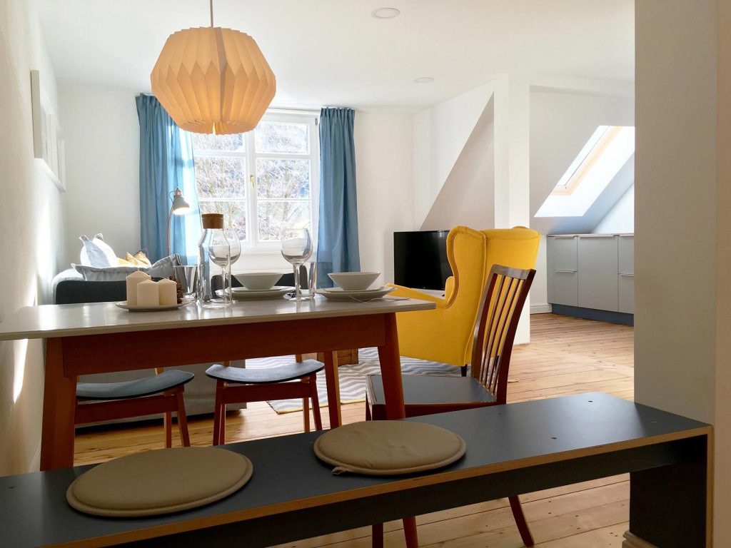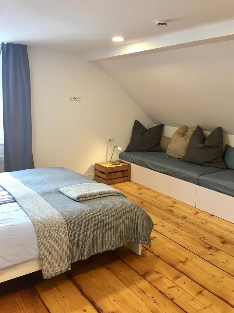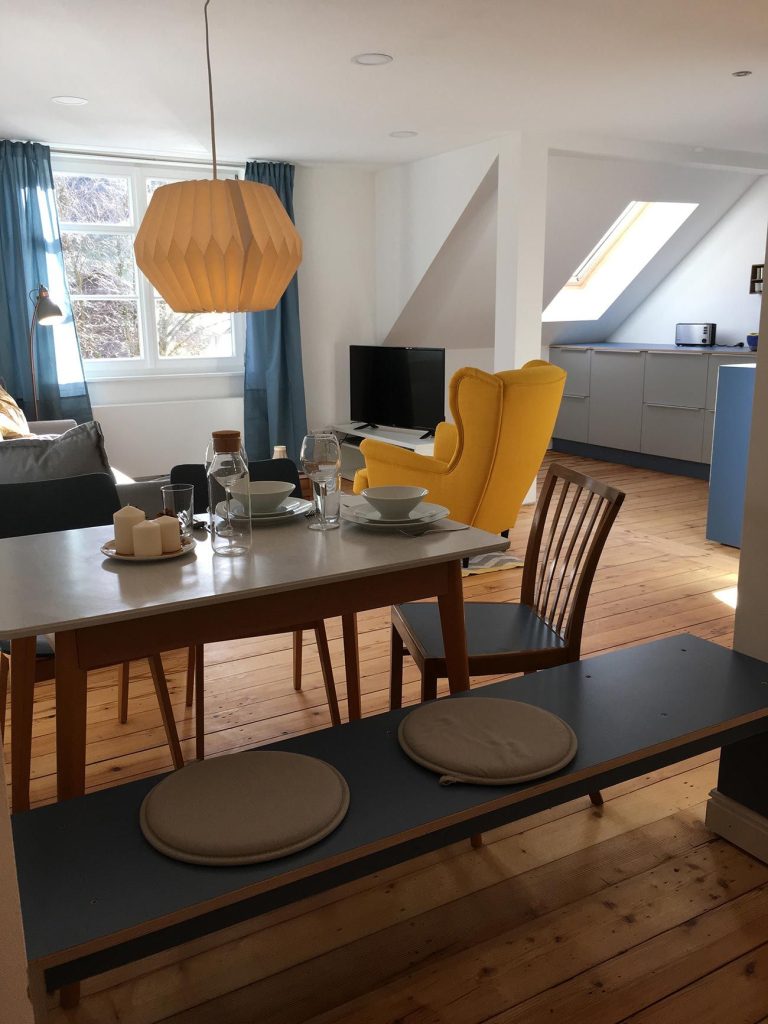 Die gemütliche Ferienwohnung Fräulein Thäsler ist mit ihren immerhin 66 qm die kleinste, aber möglicherweise auch die gemütlichste Wohnung im Rosinas. Sie bietet zwei Erwachsenen und zwei Kindern wunderbaren Wohlfühl-Platz unter den Schrägen des Daches und kann sogar noch für Tante & Onkel, Oma & Opa oder Freund & Freundin mit zwei weiteren Schlafplätzen aufgerüstet werden. Genießen Sie die Urlaub...Weiterlesensentspannung auf der einladenden Couch. Der geräumige Wohn-, und Essraum wird es Ihnen leicht machen, sich im Zusammensein mit Ihren Lieben beim Lesen oder beim planen der morgigen Bergtour, fallen zu lassen. Erleben Sie lustige Spieleabende am großen Esstisch oder einfach den genussvollen Kochabend mit der ganzen Familie in der perfekt ausgestatteten Küche. Der Blick auf die Thalkirchdorfer Berge ist garantiert!