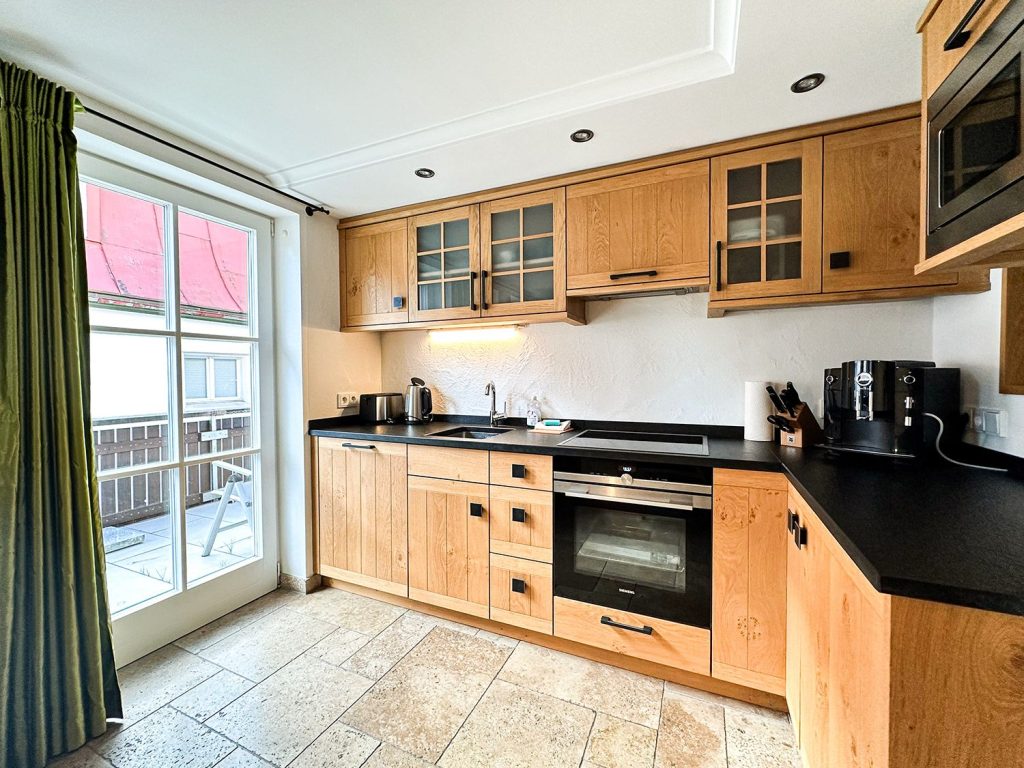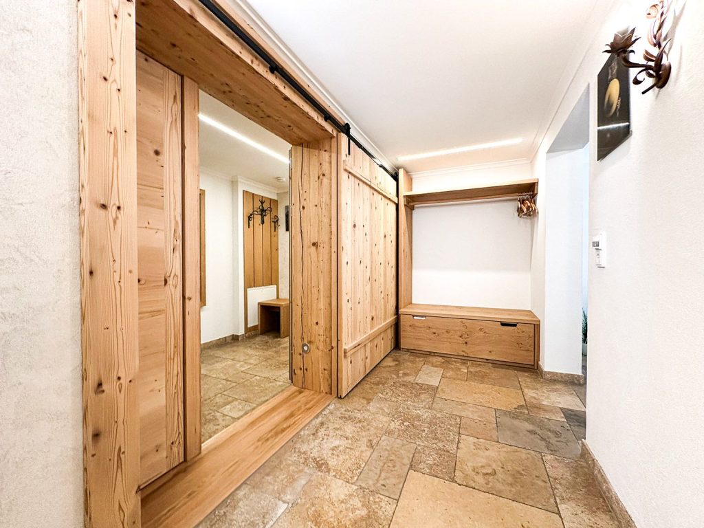 Echtholz- und Natursteinböden verleihen dieser Ferienwohnung in Oberstaufen den typischen Allgäuer Charme.