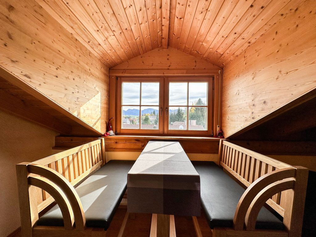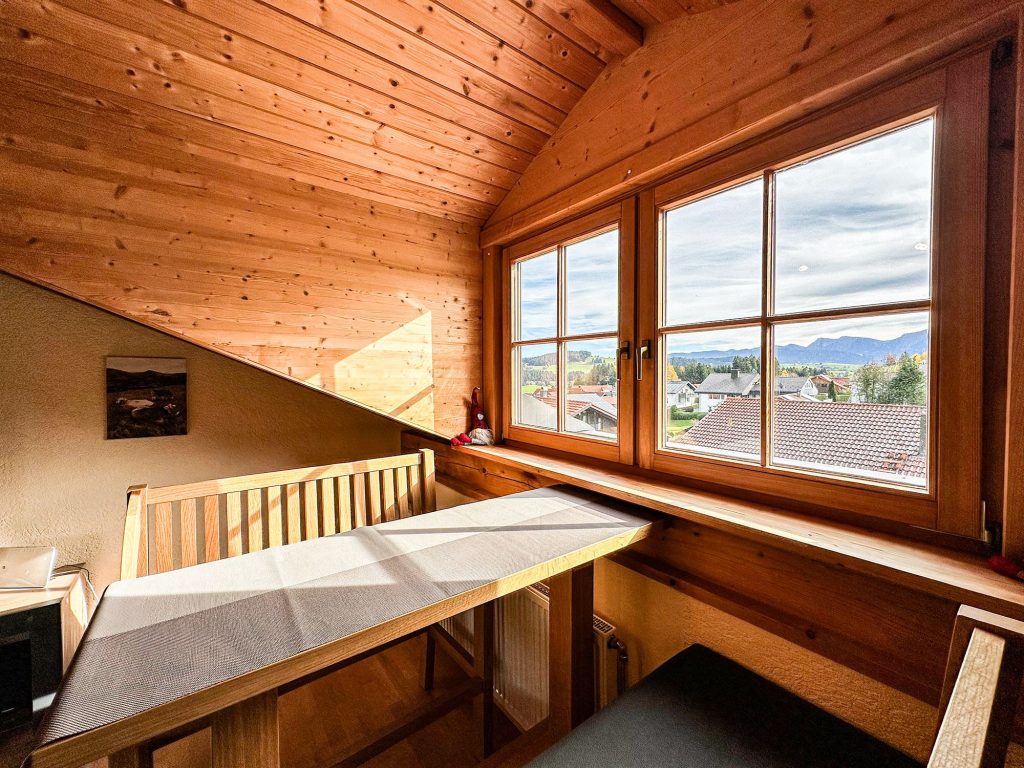 Verbringen Sie einen erholsamen Urlaub in der Ferienwohnung Sonnenschein in Oberreute. Gemütliche Dachgeschosswohnung mit Ausblick und Balkon. Perfekt für 4 Personen. Ein Doppelbett im Schlafzimmer und ein Doppelbett im Wohnbereich. Parkplatz und W-Lan stehen Ihnen zur Verfügung. Entspannen Sie sich auf der gemütlichen Sofalandschaft.
