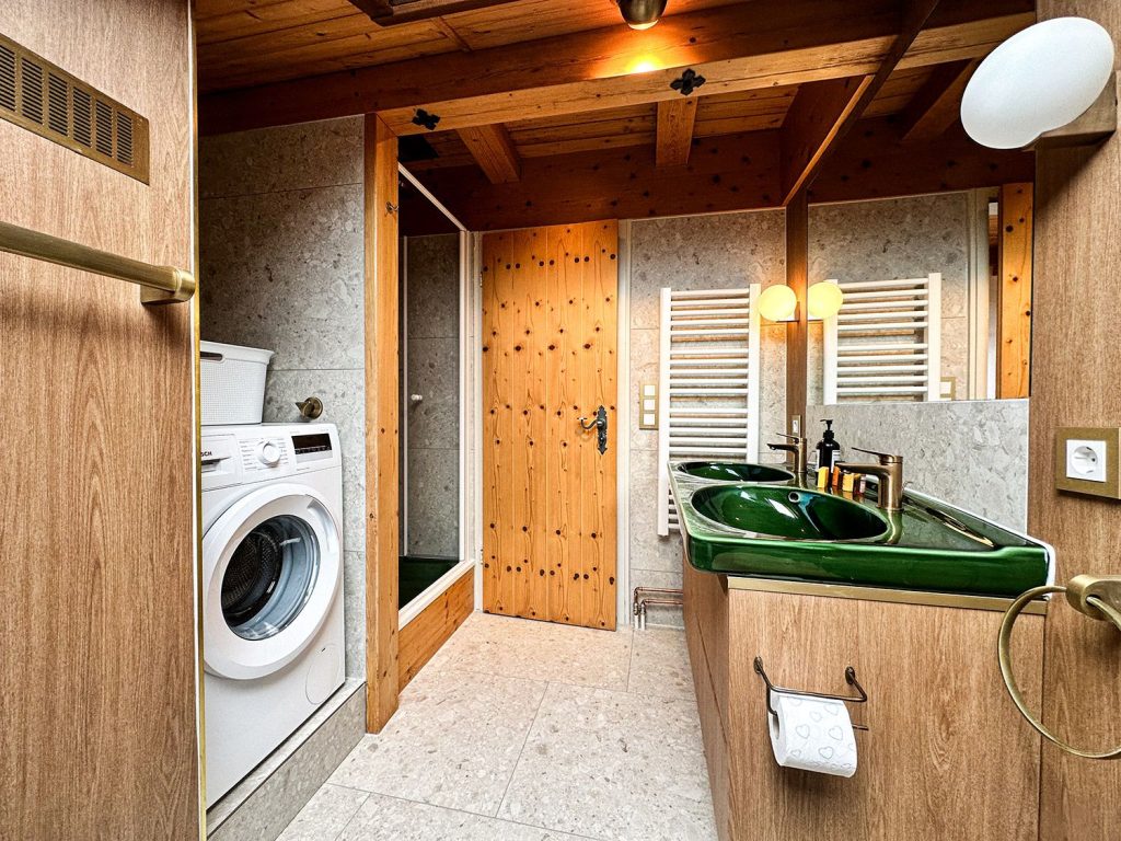 Besonders hervorzuheben ist der überdachte Balkon, auf der Sie in der Frische der Alpenluft entspannen können. Hier finden Sie Sichtschutz für die Fenster, sodass Sie ungestört die Ruhe genießen können. Lassen Sie den Abend mit einem fesselnden Blick auf die umliegende Natur ausklingen und genießen Sie die frische Bergluft in vollen Zügen.