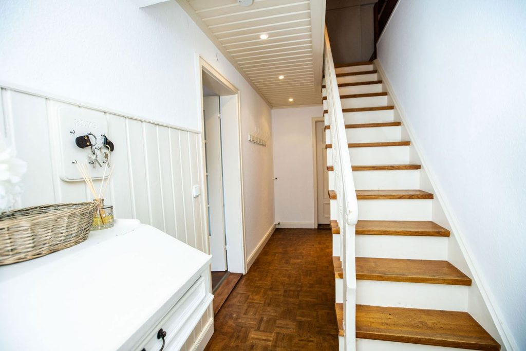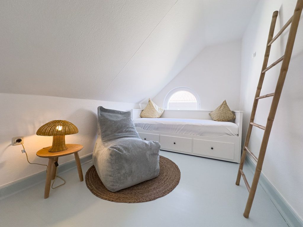 Für die Wäschepflege stehen Waschmaschine, Trockner, Bügeleisen, Bügelbrett und Wäscheständer zur Eigennutzung bereit. Die praktische Garderobe und Kommode ergänzen die Inneneinrichtung. Für Ihre Sicherheit sind Rauchmelder und Feuerlöscher installiert.