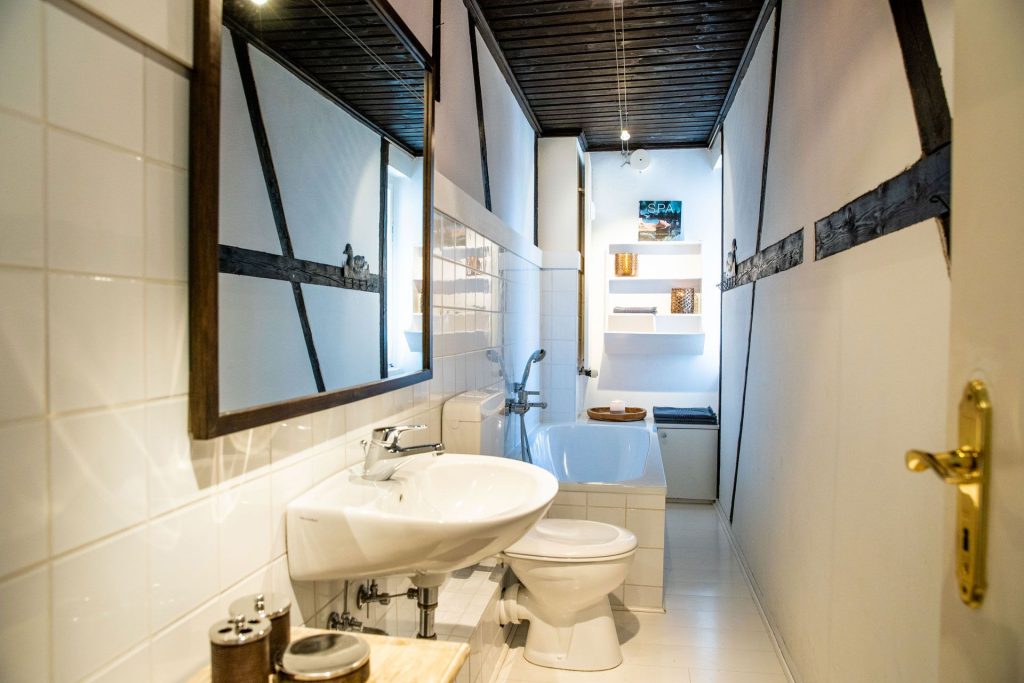 Zwei Badezimmer sorgen für ausreichend Komfort auch bei größeren Gästegruppen. Die Ausstattung umfasst eine Badewanne, eine Dusche, jeweils mit warmem Wasser, Waschbecken, Spiegel und WC. Zusätzlich stehen Ihnen Haartrockner, Badetücher, Handtücher und Bettwäsche zur Verfügung. Ein besonderes Highlight des Hauses ist die vorhandene Sauna, die Ihnen Entspannung nach einem aktiven Tag in der Umgebung bietet.