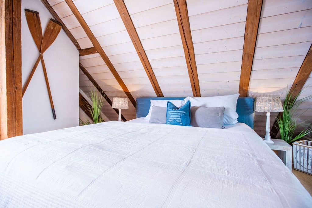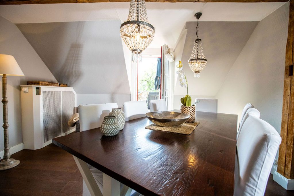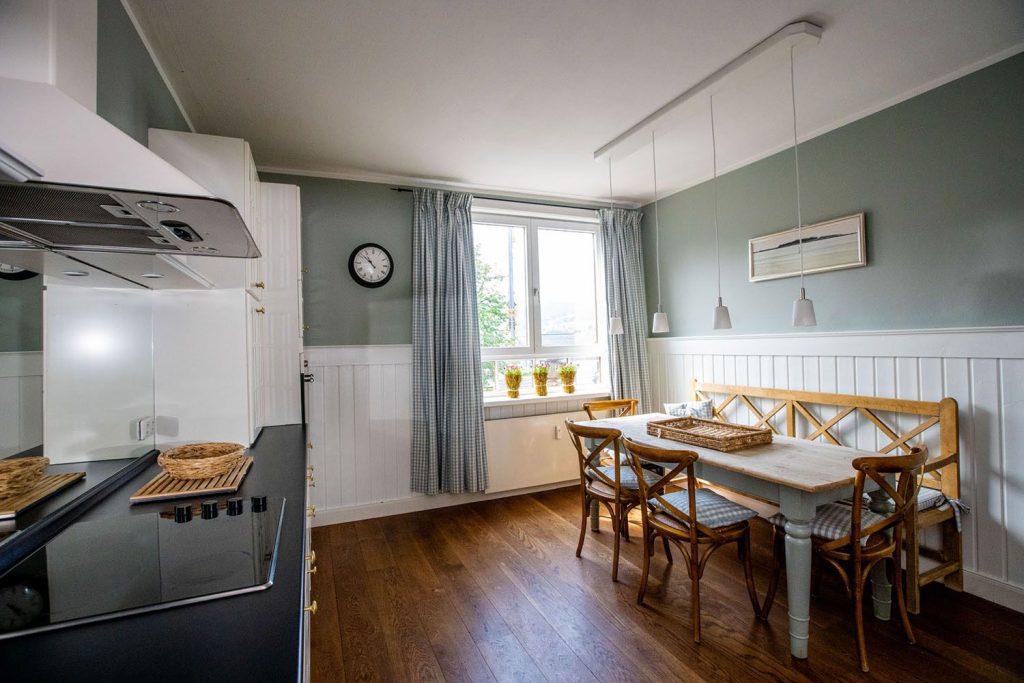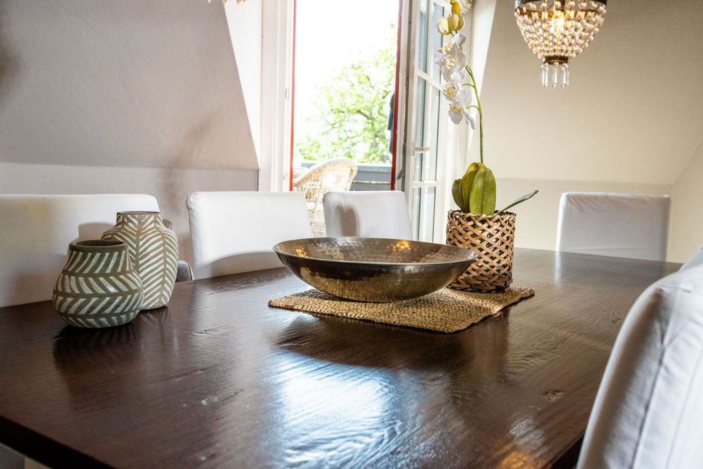 Die Küche ist als geschlossener Raum mit Esstisch gestaltet und umfangreich ausgestattet. Neben einem 4-Platten-Herd mit Elektrobackofen verfügen Sie hier über eine Kaffeemaschine, eine Senseo-Espressomaschine, einen Toaster, eine Mikrowelle sowie sämtliche notwendigen Küchenutensilien, Geschirr und Besteck. Kühlschrank mit Gefrierfach, Spülmaschine und Wasserkocher sind ebenso vorhanden, um Ihnen eine komfortable Selbstversorgung zu ermöglichen.
