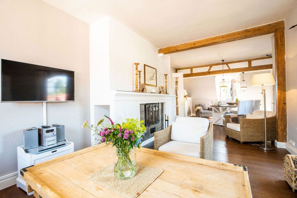 Das ...WeiterlesenHaus wurde im Jahr 1903 erbaut und im Jahr 2020 zuletzt umfassend renoviert, wodurch eine gelungene Kombination aus historischem Charme und moderner Ausstattung entstanden ist. Die Räume sind mit hochwertigem Parkettboden ausgestattet, sowohl im Wohnzimmer als auch in den vier Schlafzimmern, was zur gemütlichen Wohnatmosphäre beiträgt. Die zentral beheizte Unterkunft verfügt über insgesamt fünf Zimmer: vier Schlafzimmer mit Platz für insgesamt neun Schlafplätze sowie ein einladendes Wohnzimmer mit Sofaecke, Sessel und offenem Kamin. Dieses lädt zum entspannten Verweilen ein, besonders an kühleren Tagen.