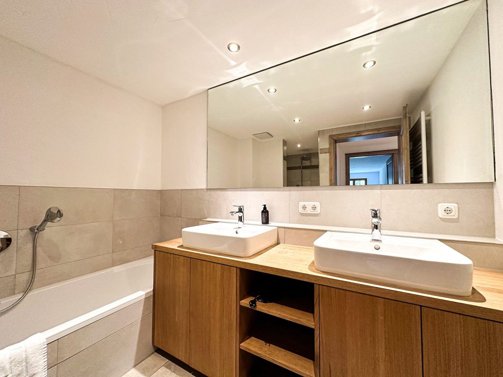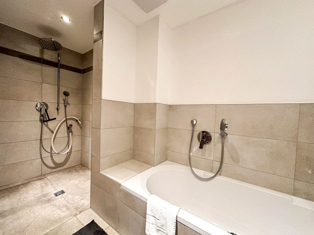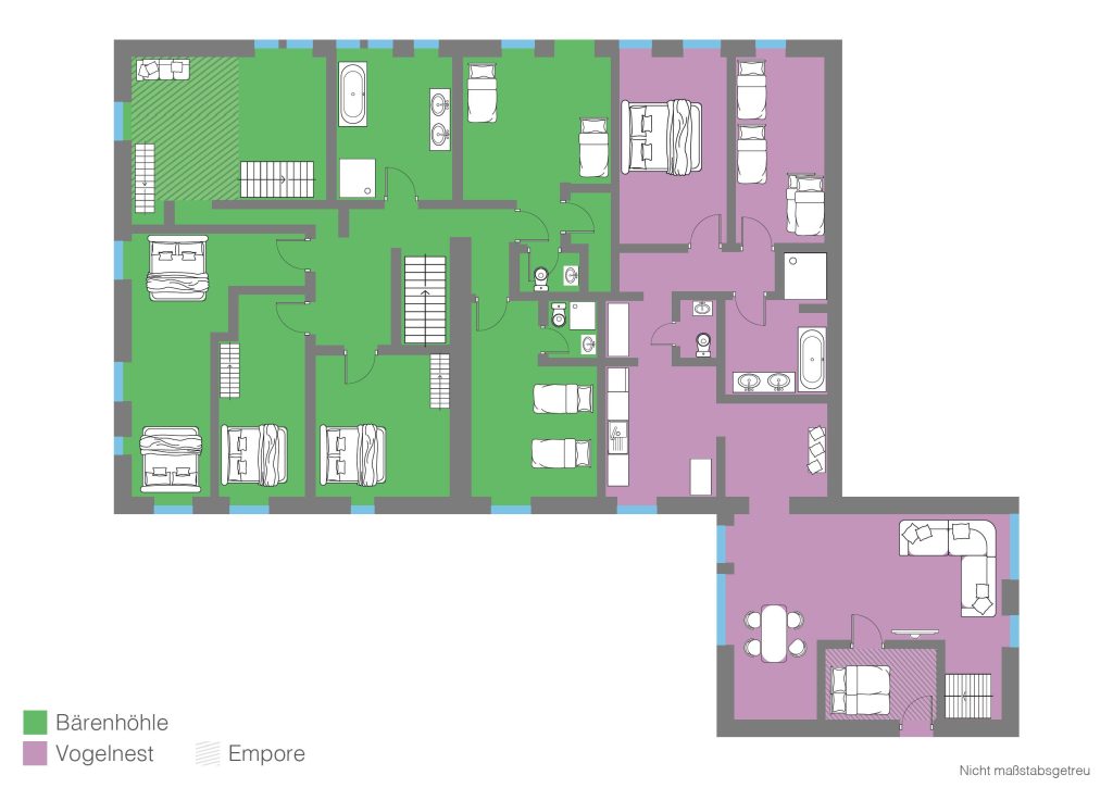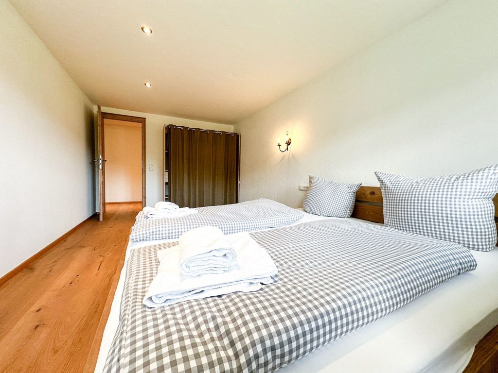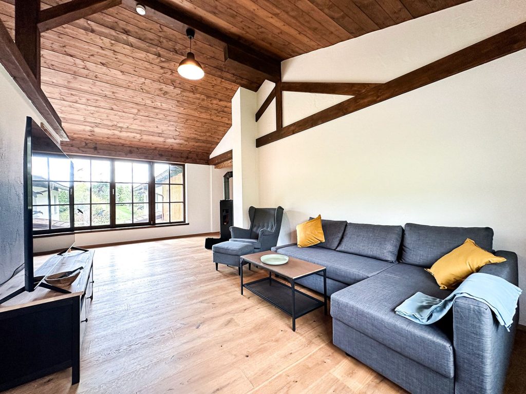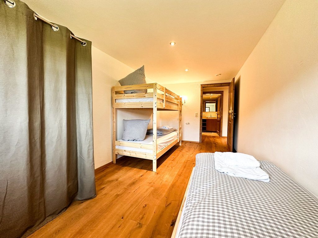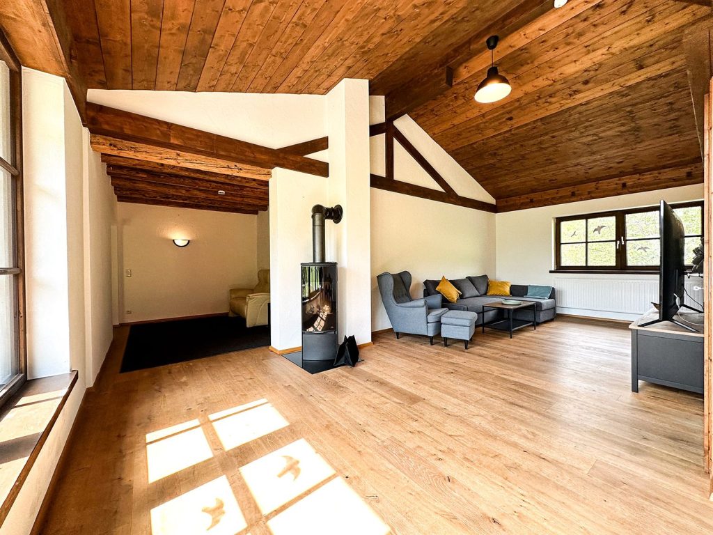 Die Ferienwohnung verfügt über zwei gemütliche Schlafzimmer, die mit liebevollen Details ausgestattet si...Weiterlesennd und Ihnen eine erholsame Nachtruhe garantieren. Zusätzlich finden Sie ein elegantes Badezimmer mit bodengleicher Dusche und Badewanne sowie ein separates Gäste-WC, ideal für einen komfortablen Aufenthalt. Der offene Wohnbereich mit einladender Sofaecke und Kaminofen sorgt für eine behagliche Atmosphäre. Hier können Sie entspannen, einen Film auf dem 44-55 Zoll großen TV genießen oder einfach die schöne Aussicht auf die umliegende Natur bewundern. Der Esstisch lädt ein, gemeinsame Mahlzeiten zu genießen und die Zeit mit Ihren Liebsten zu verbringen.